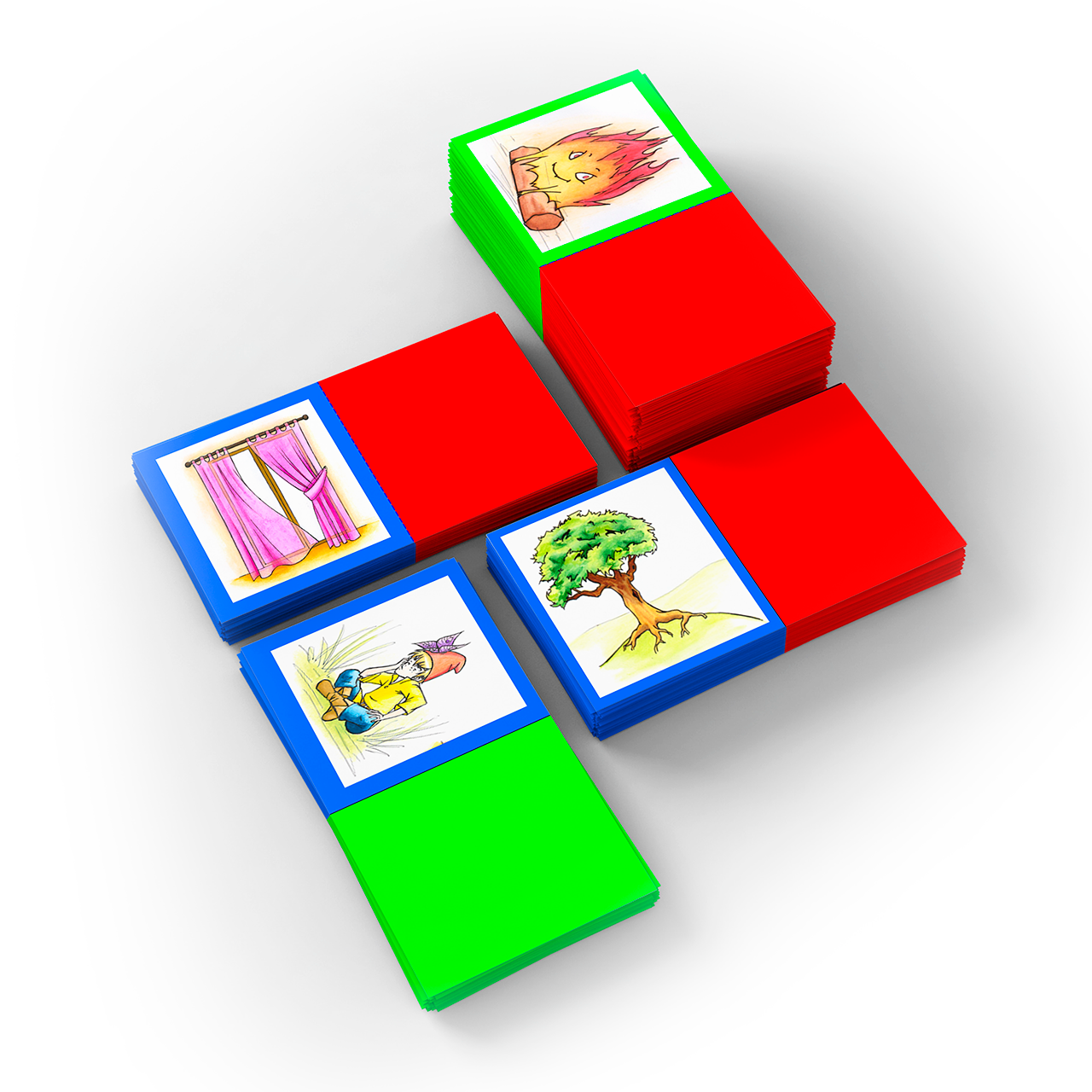 Tartalma: 96 db dominókártya, ami 88 db szókép és 8 db Joker dominókártyából áll.